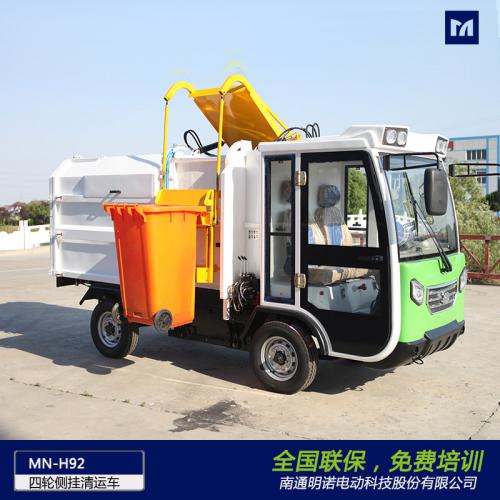 明诺电动四轮侧挂桶垃圾清运车 4立方垃圾箱容量大性能特点