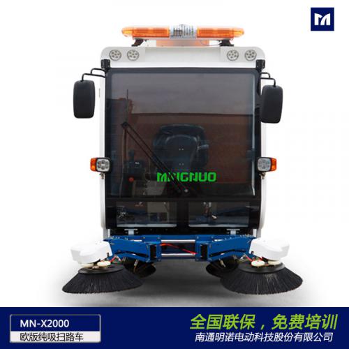 明诺出口欧洲四轮电动扫路车 街道马路驾驶式扫路车,MN-X2000电动纯吸扫路车采用明诺特色全景式驾驶室,液压倾倒提升高度达1.4米,垃圾箱容量大,适合环卫系统使用。是街道,小区,学校、环卫街道、景区、工业园区等大面积场所清扫的理想车型。