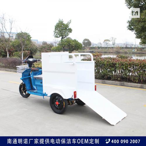 江苏保洁车厂家 明诺三轮装桶保洁车报价,江苏保洁车介绍:明诺电动三轮单桶保洁车,可装载一只240L标准垃圾桶,整车小巧灵活,随走随停,且易清洗,装卸方便,适用城镇街道、工厂、学校、医院、居民生活区、机关单位等路段垃圾收集和巡回保洁使用。