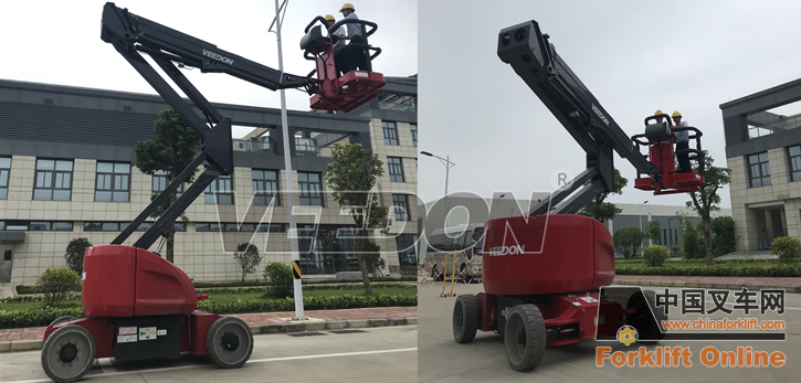 Veedon电动自行式曲臂型高空作业平台为用户提供了多角度多方位的作业功能,其独特的臂架设计可接近多重障碍的空间施工,卓越的自行走能力、底盘360度旋转以及平台的上下、左右摆动功能让作业更轻松。超静音的无痕轮胎设计适合在室内工作,不会对您的地面造成任何损伤。智能控制更轻松,采用霍尔效应全比例控制手柄以及CAN总线智能控制系统,在使用中更简单易于操控并允许同步运行多项功能。并且在维修及程序升级等过程中,更易于诊断及升级。