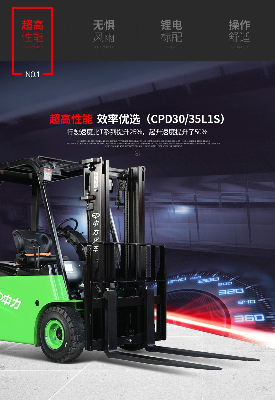 浙江中力CPD30/35L1S 3.0/3.5吨电动平衡重叉车 锂电壹号