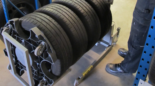 轮子牢固地放在卡车上,可以轻松地推入车间,而叉车可以将多个轮子和轮胎带入或带出仓库。倾斜过程是通过操纵杆进行的,以避免产生压力和潜在的危险姿势。