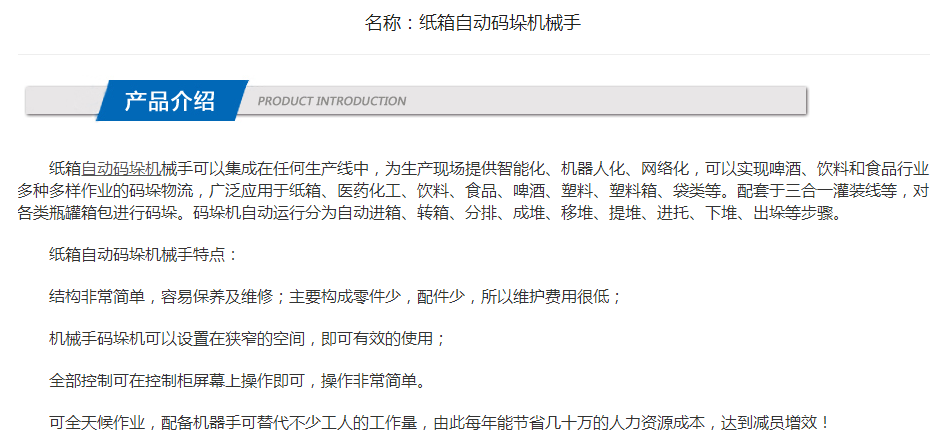 纸箱自动码垛机械手