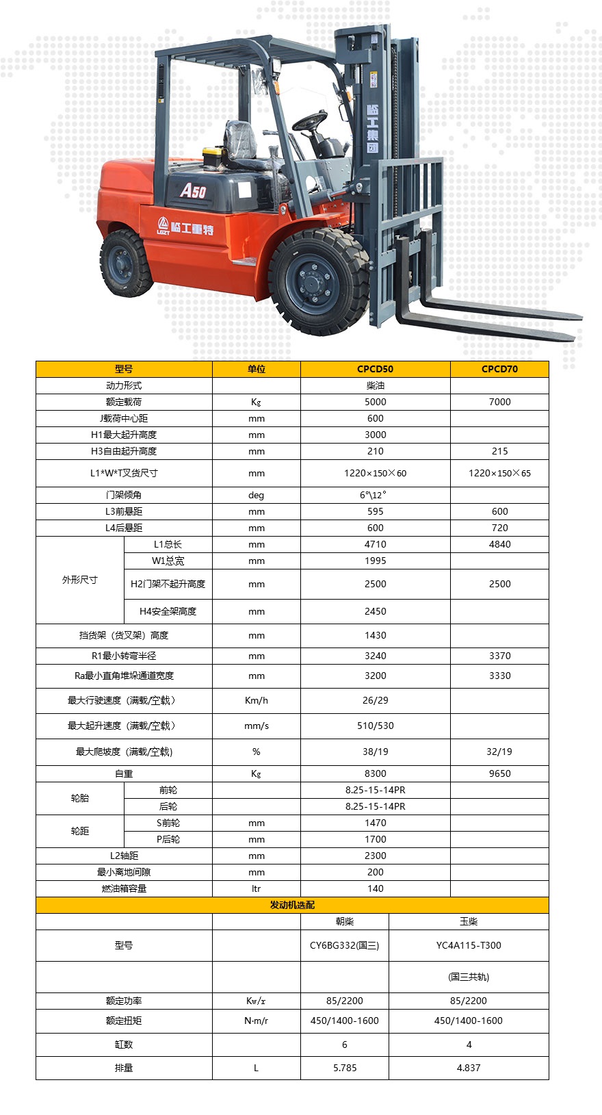 丰田中型工况:内燃平衡重(柴油/汽油/LPG) FDZN/FGZN20-30