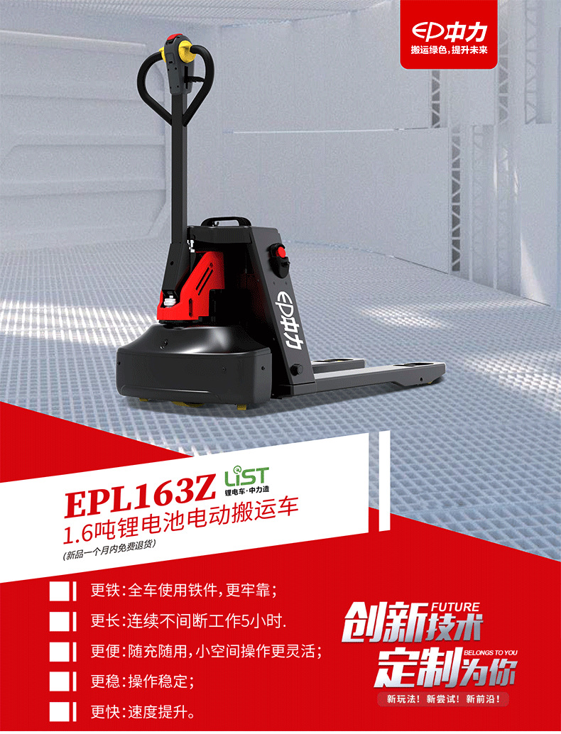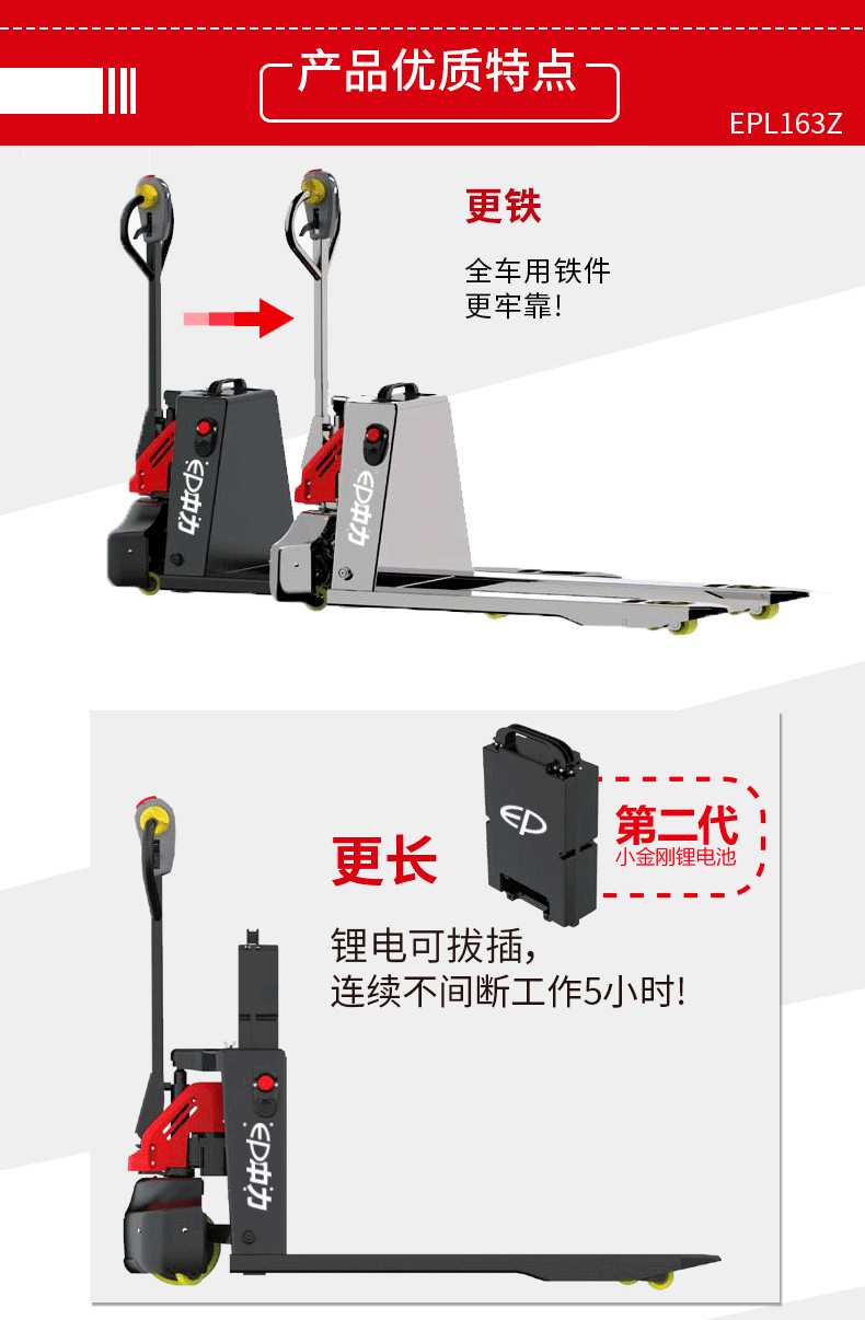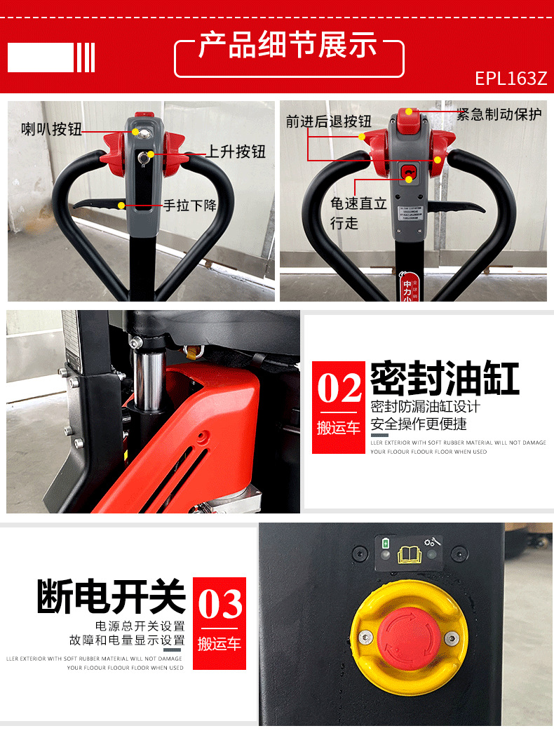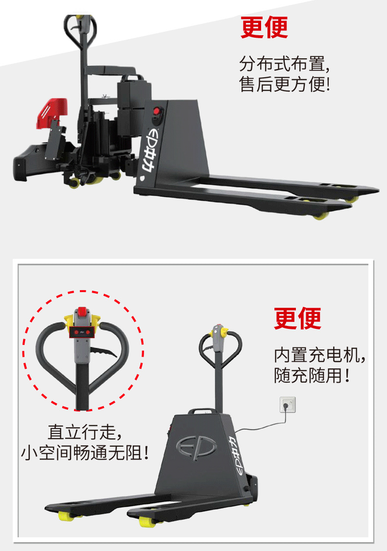 杰尔:1.6吨锂电池全电动液压搬运车电动叉车163吨电瓶托盘车手拖地牛车