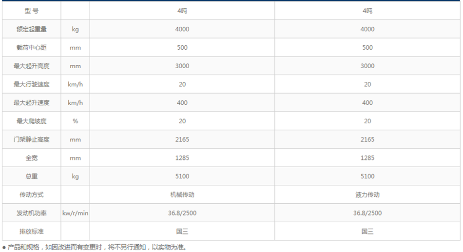 ● 加强型门架设计(加宽型槽钢),加粗倾斜油缸活塞杆直径,加粗提升油缸直径提高门架的耐久性。