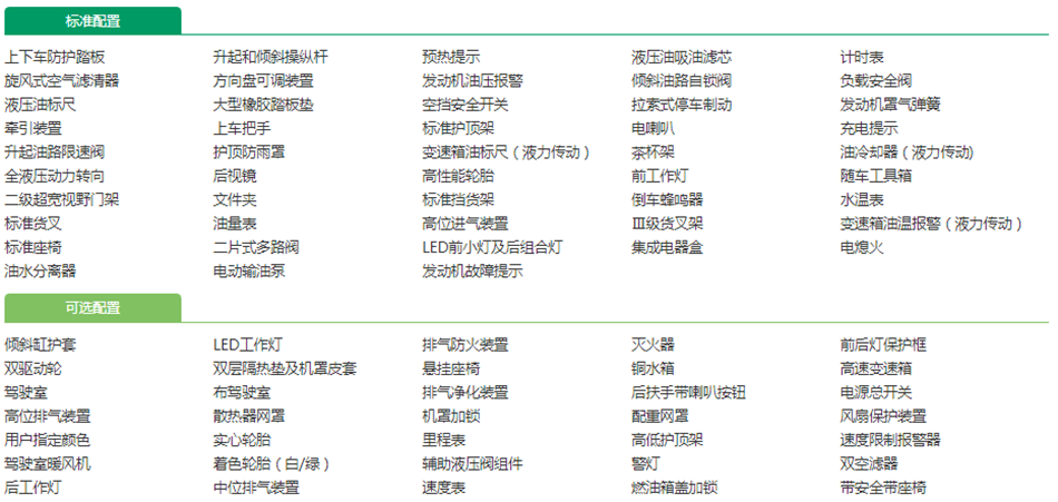 ● 采用新柴4D32G31发动机及加强型变速箱为基本配置。全部满足GB 20891-2014第三阶段排放要求。