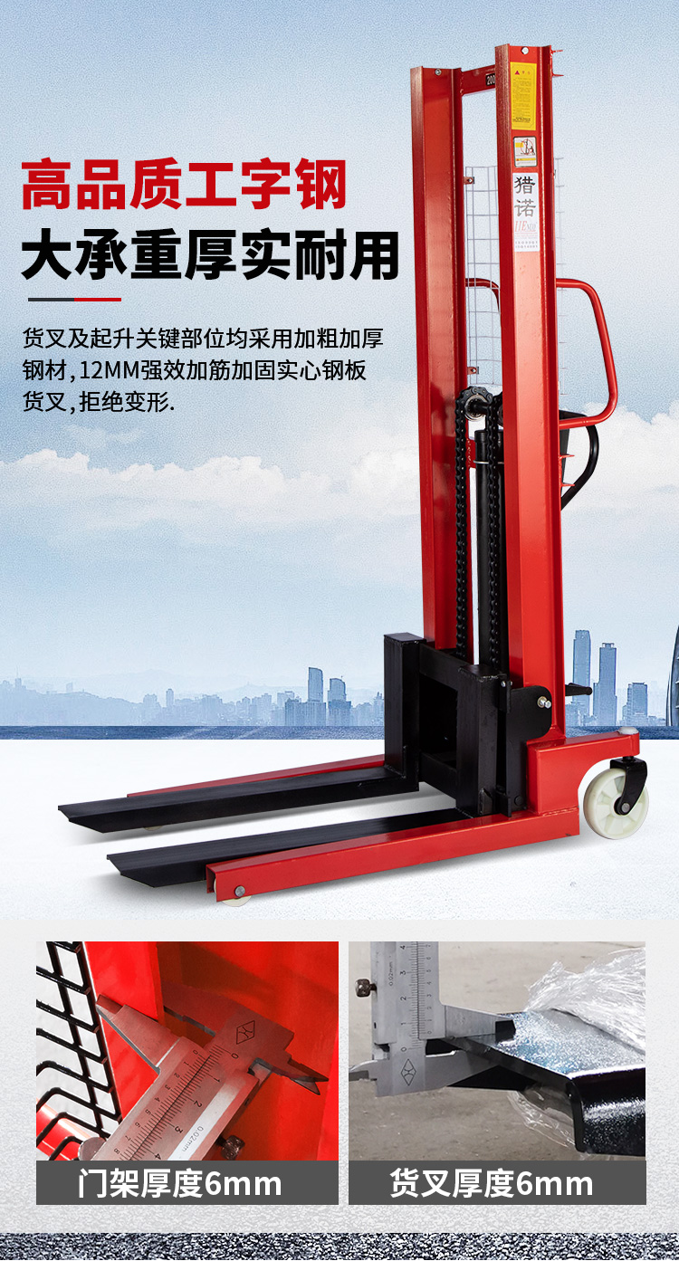 猎诺CTY手动液压堆高车升高车装卸铲车可非标定制