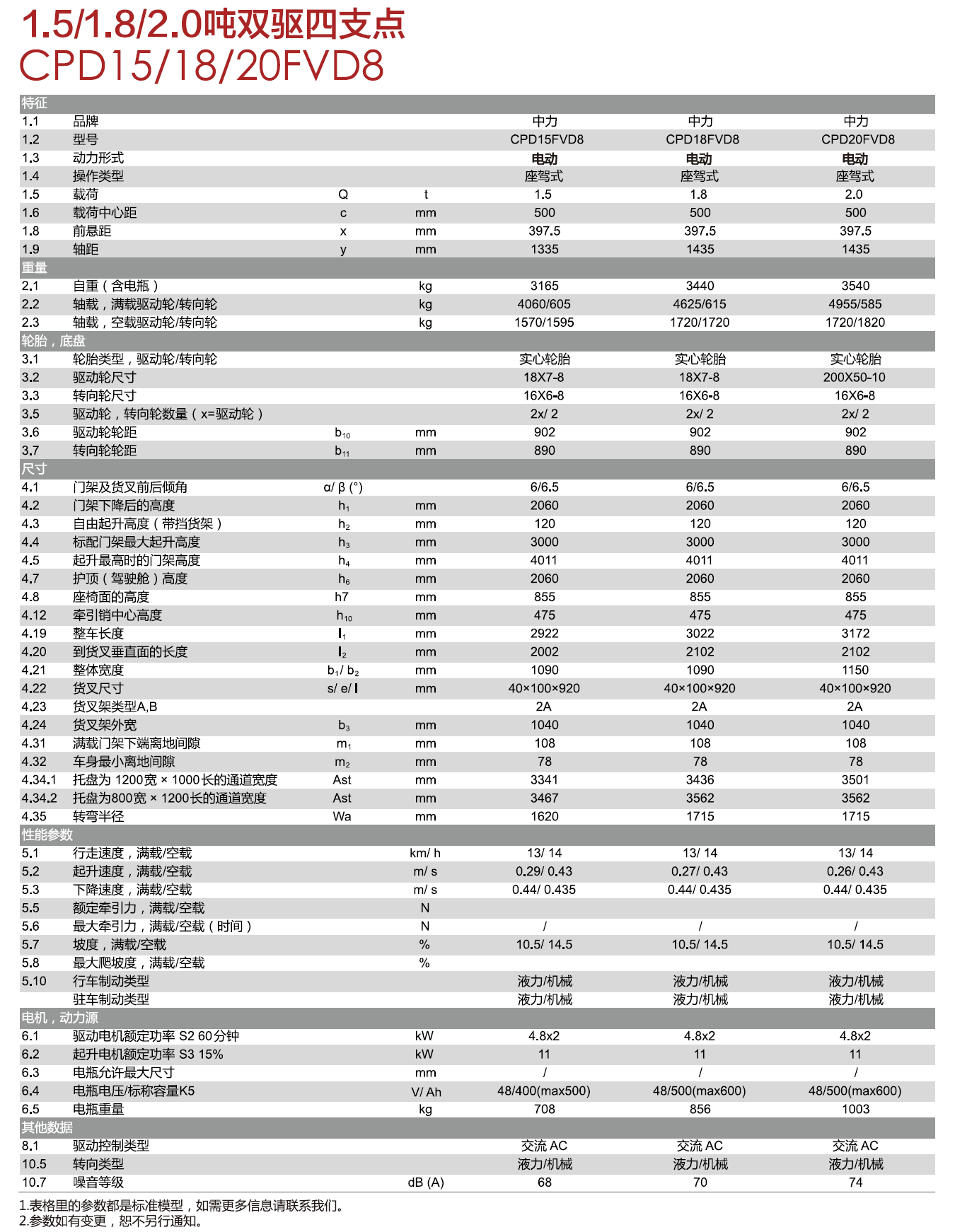 华叉 1.5/1.8/2.0/2.5/3.0/3.5吨双驱四支点叉车
