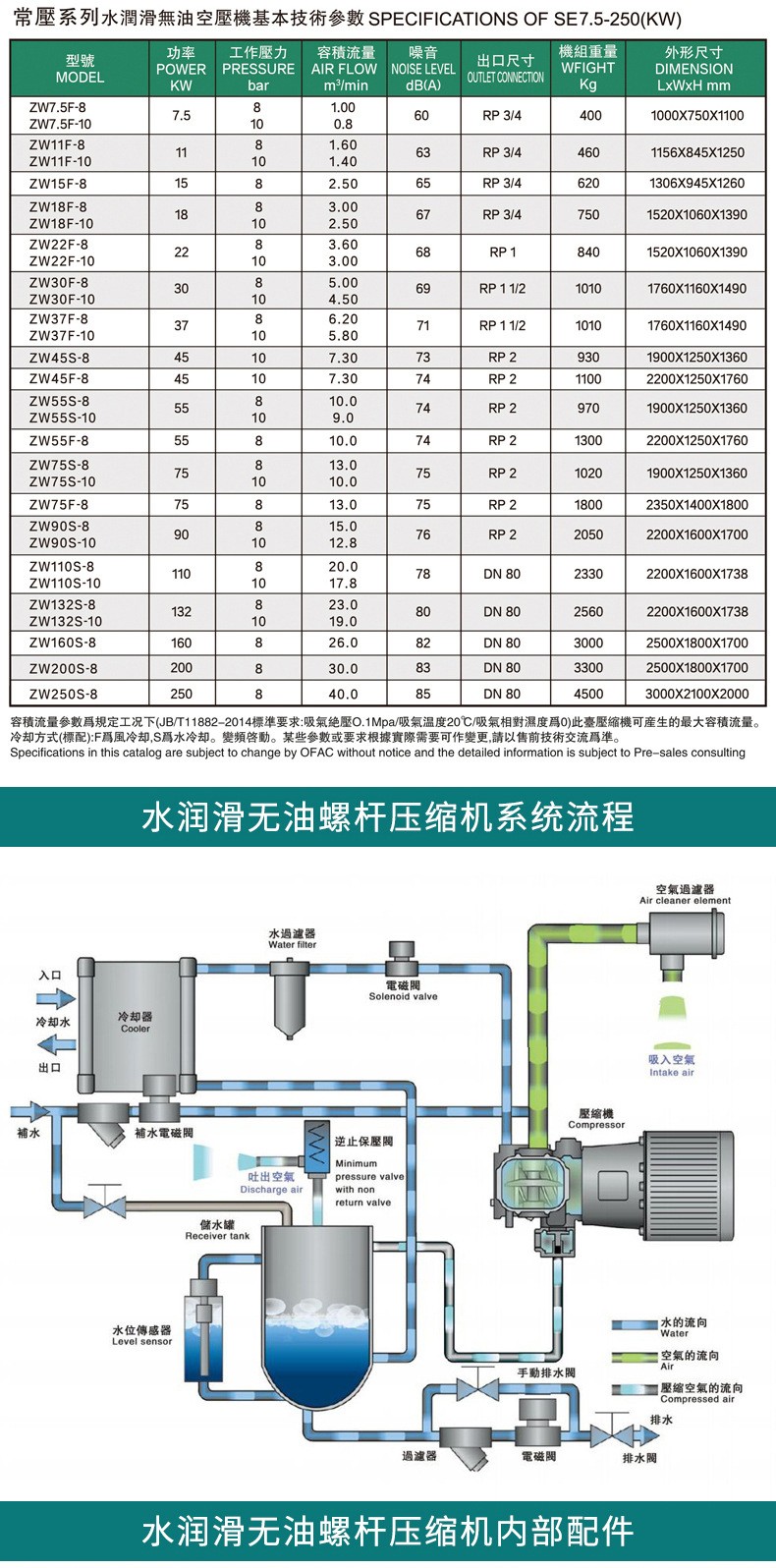 无油水润滑螺杆空压机的优势: