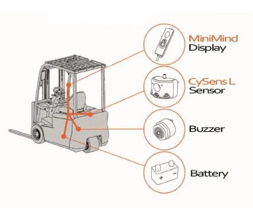 此外,系统配备了先进的MiniMind显示器,这也是系统的核心。它作为中央单元运行,处理来自接收器的信号。这为操作员提供了与叉车运动有关的视听警报。