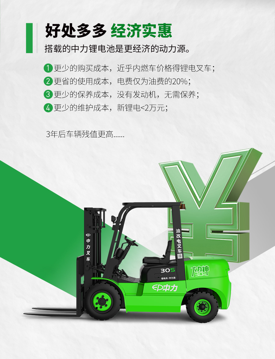 中力:ICE301S 3.0吨锂电平衡重叉车 油改电叉车