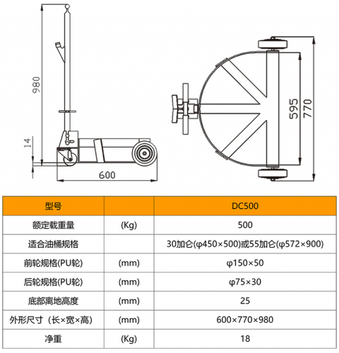 大夹口油桶搬运车手动推车铁桶塑料桶推拉车圆桶手推车鹰嘴搬运车