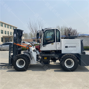 越野式叉车又叫野战叉车,它具有良好的机动性、越野性可靠性。是一种可以在坡地和不平地面上安全高地进行货物装、卸、堆垛及搬运作业的工程车辆平衡叉车一样.它可以装置货叉或更换多种属具来提高作业效率。越野叉车适用于道路修筑、城市建设、环境卫生、石料场、中小型土木工程、车站、码头、货场、仓库等地方,主要用来转运石料、设备、货物、城市垃圾箱以及集装物料等