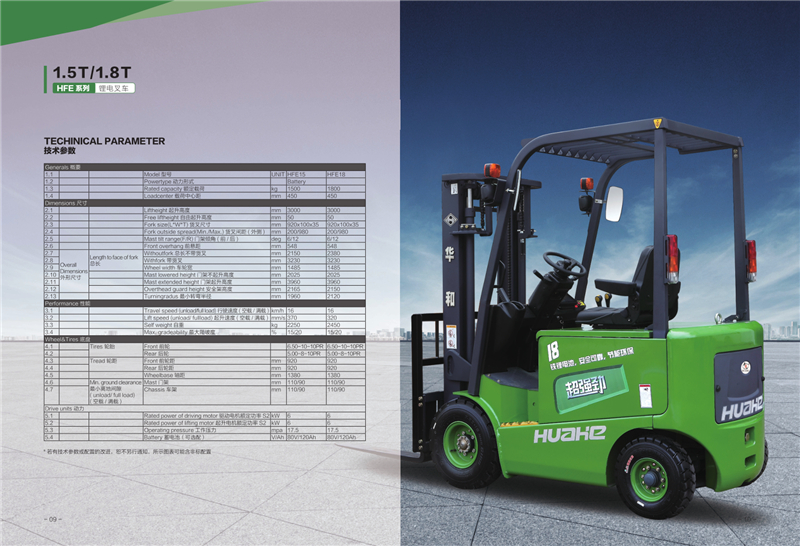 华和:HFE系列1.5/1.8T铁锂电平衡重式叉车
