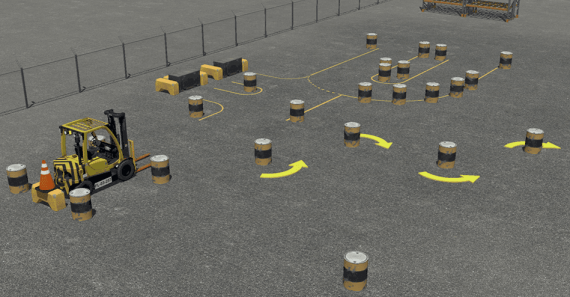 学员遵循行业最佳实践,学习基本的车辆操纵技能、货叉间距和定位,以及如何在控制真实设备之前安全地处理各种负载。