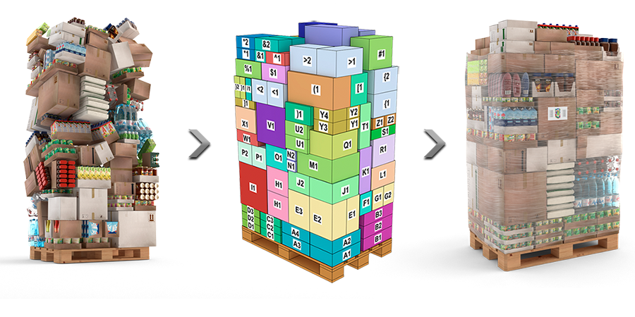 堆叠混合产品需要最大的效率(成本)和稳定性(运输)。智能码垛软件可以解决这个问题。如果您选择我们的手动或全自动混合装载码垛解决方案之一,则需要这种高科技码垛软件。