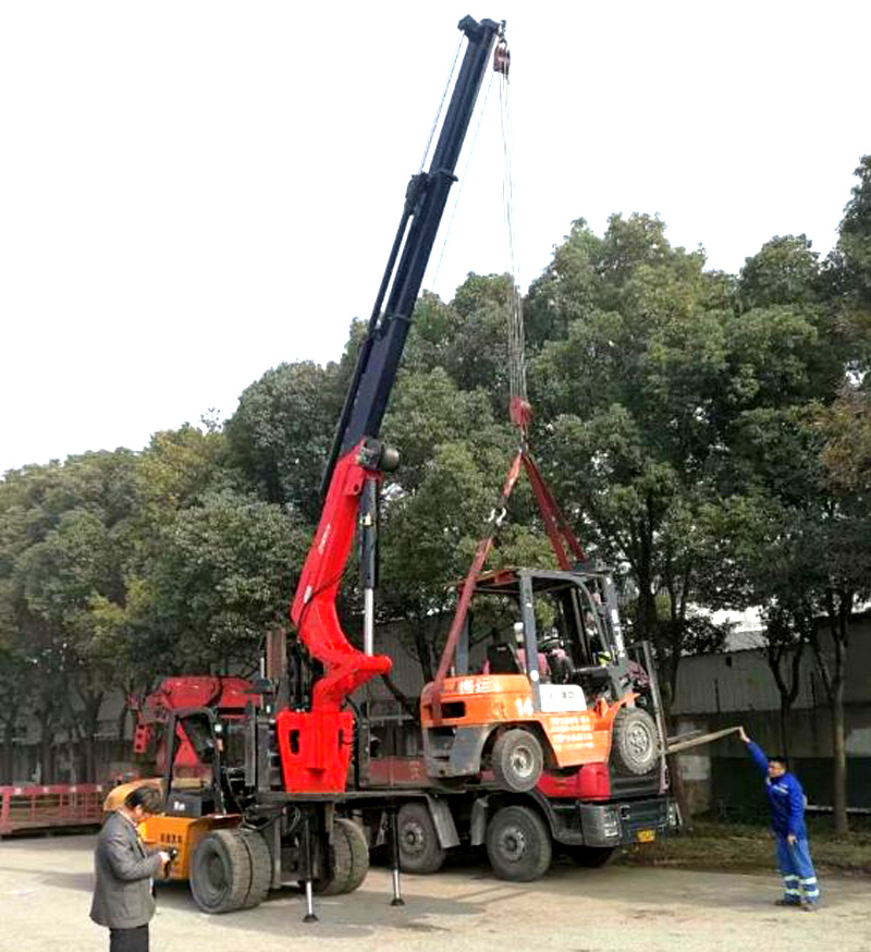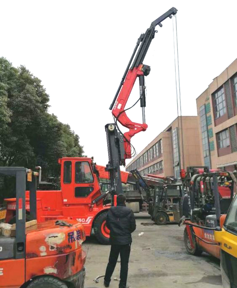 10吨飞臂吊:江威制造,政府颁发专利,液压伸缩油缸三节臂,一节手拉臂,臂长10.2米,举升高度根据叉车吨位,门架升高决定。大起重2.61米吊8000kg,10.2米吊1800kg。自重3200kg(可选选装加长臂,弯臂,吊栏,转扬)