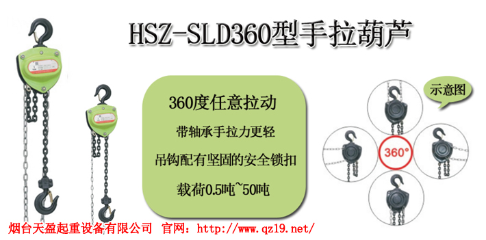 烟台天盈起重设备有限公司销售赛力顿品牌:HSZ-SLD360型手拉葫芦,应用于电力,船舶,汽车制造,建筑,公路,桥梁,冶金,矿山,边坡隧道,井道治理防护等基础建设工程的机械设备,详细介绍可参考以下内容: