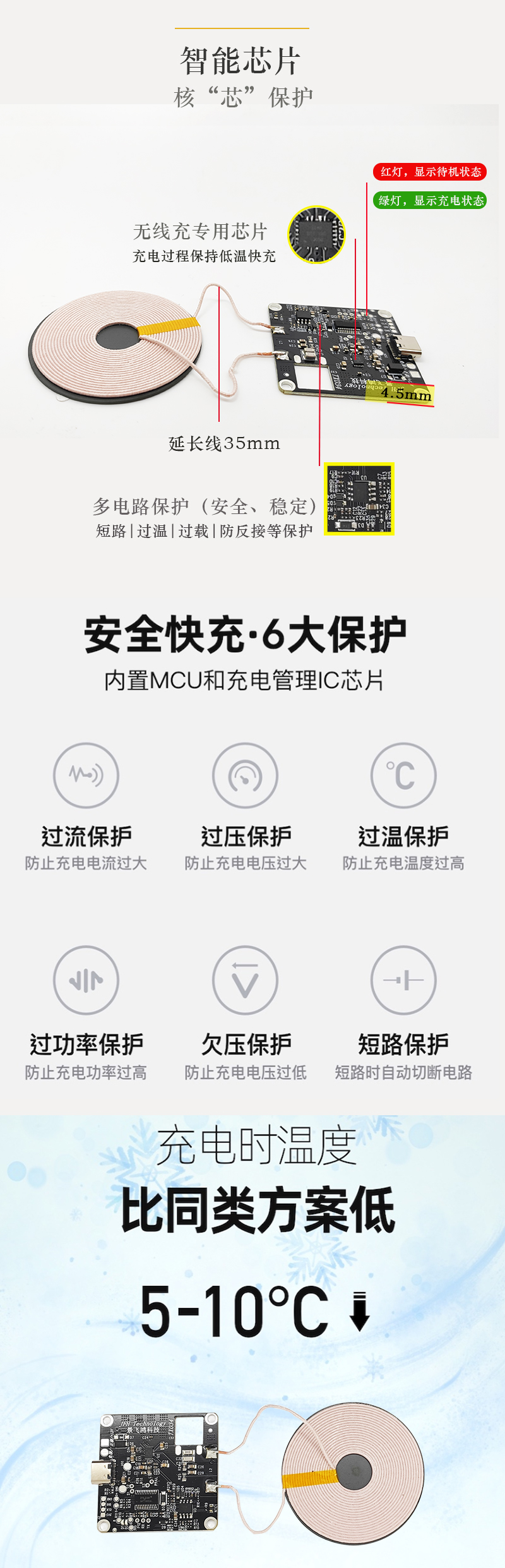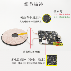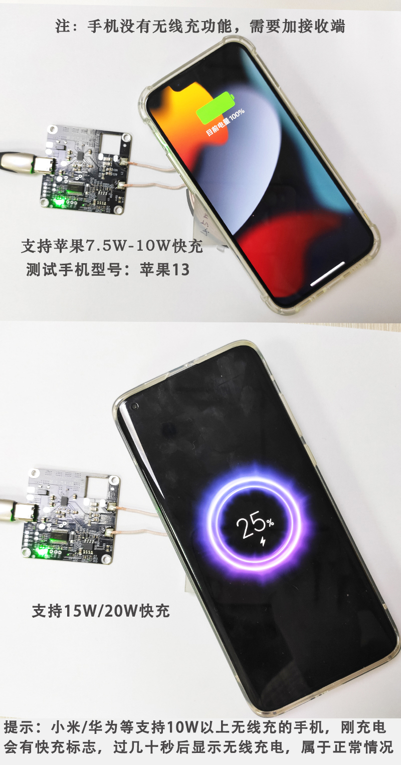 备注:测试时手机与线圈距离之间间隔7-12mm左右,无线充输出功率才能达到最佳。