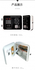 小区智能充电站产品由一台控制器外加十个两孔插座构成,控制器内装有电表及空气开关,控制器有十路供电通道,每路通道都有其独自的显示窗口与控制按键,用户投币后,按其中一个控制按键,控制器就会给对应通道的插座供电,各通道的工作状态与工作时间,可以通过其对应的显示窗口显示出来。小区充电站放置场所:如农贸市场、小区停车库、大型厂矿企业、图书馆、购物乐园、电影院、工厂宿舍楼、旅游景点等电动车密集区域安装使用。