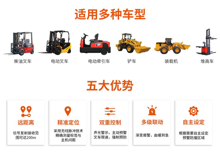 UWB叉车防撞预警报警系统拐角盲区无线测距行人倒车碰撞