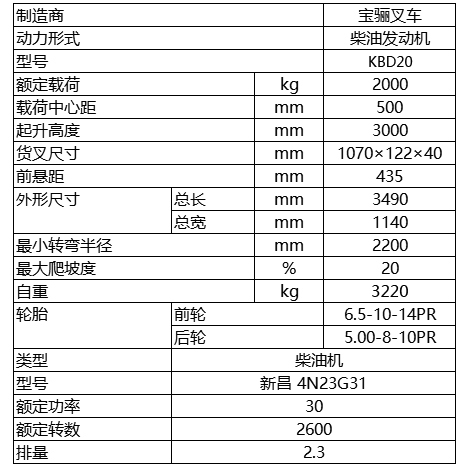 宝骊叉车2.0吨 内燃平衡重式叉车