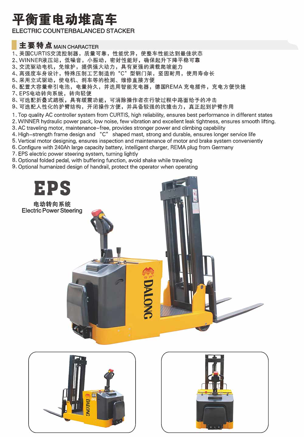 全电动堆高车起步,提升速度后,稳住加速踏板,如果路况比较好,可以继续加速。堆高车需减速时,放松加速踏板,轻踏制动踏板,这样可充分利用减速的能量,如果堆高车具有再生制动功能,即可使减速时的动能得以回收。当行驶道为下坡行驶时,只需轻轻踩制动踏板,不需断开全电动堆高车驱动电动机的电路,利用车辆下行的功能,减少蓄电池的能量消耗。