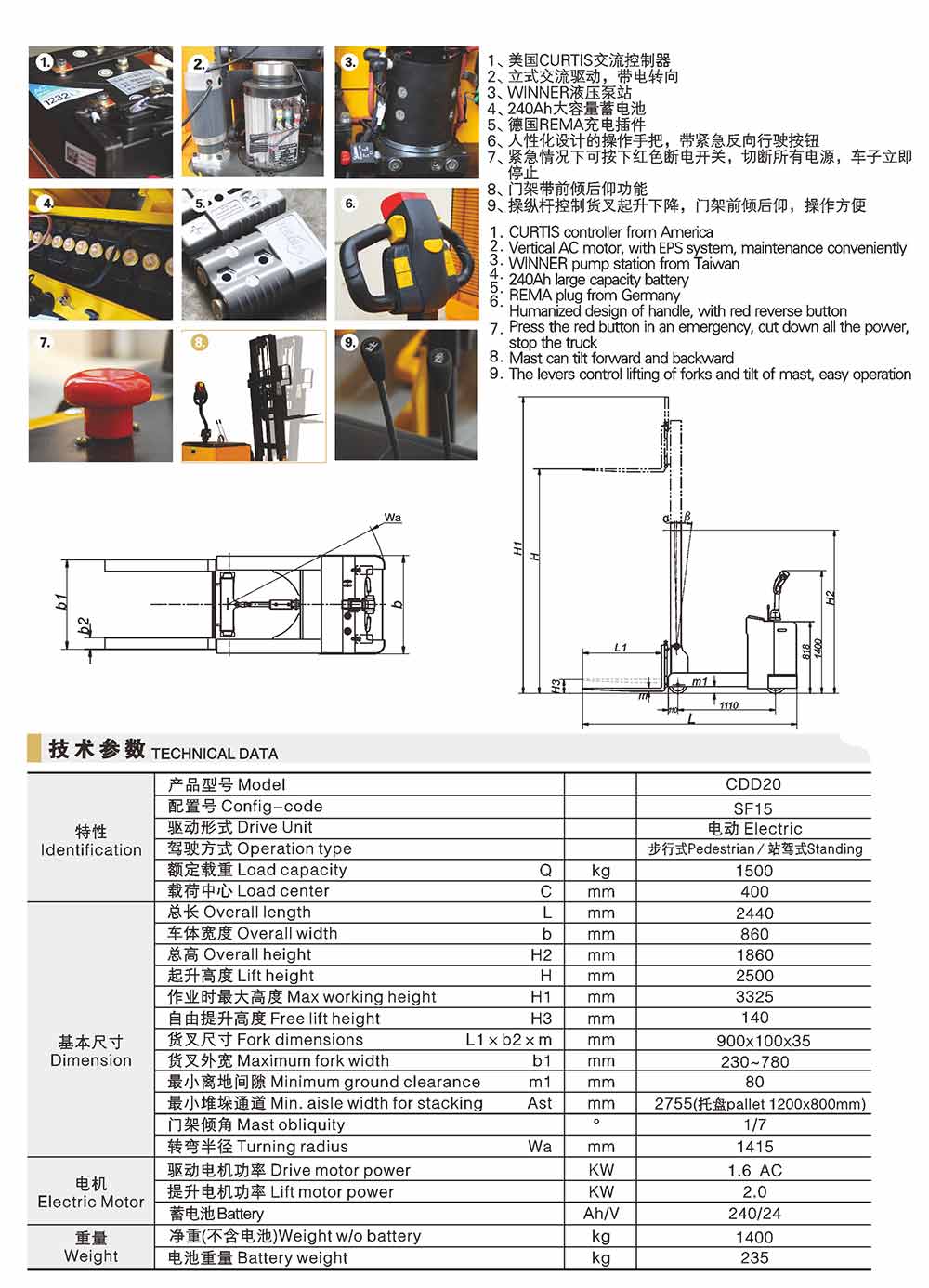 注意观察电瓶叉车电压表的电压,若低于限制电压时,叉车应立即停止运行注意驱动系统,转向系统的声音是否正常,发现异常声音要及时排除故障。