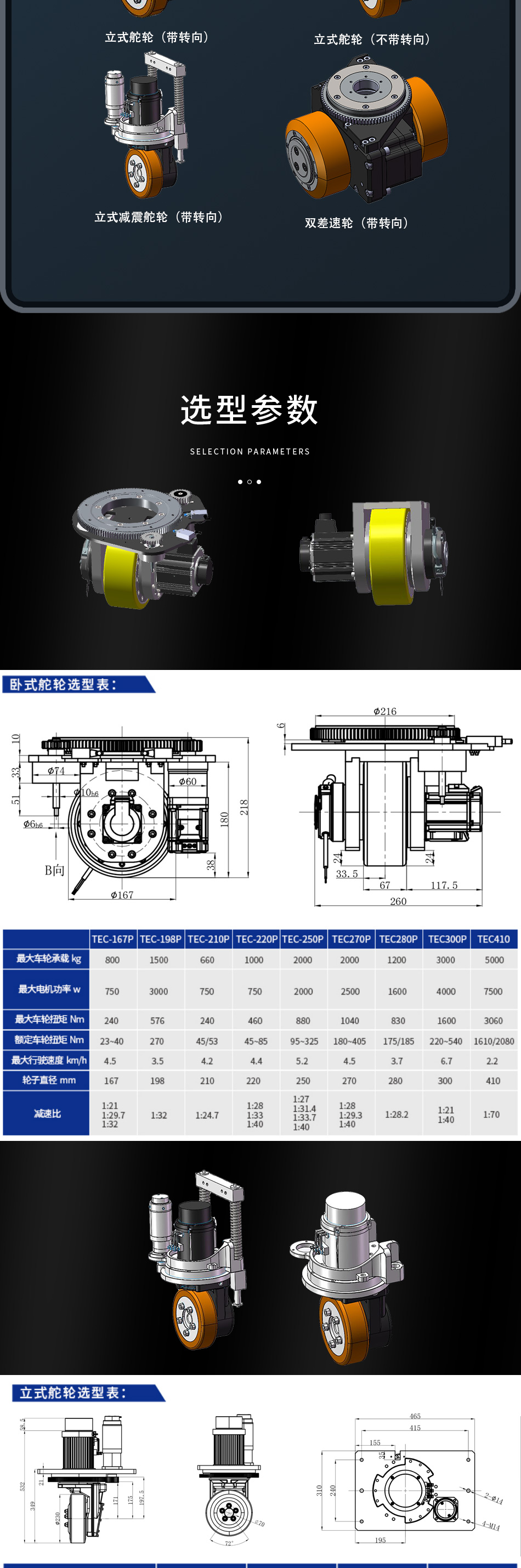 卧式MRT36低压伺服驱动舵轮总成功率可达4Kw承载至2.2吨重CAN控制器