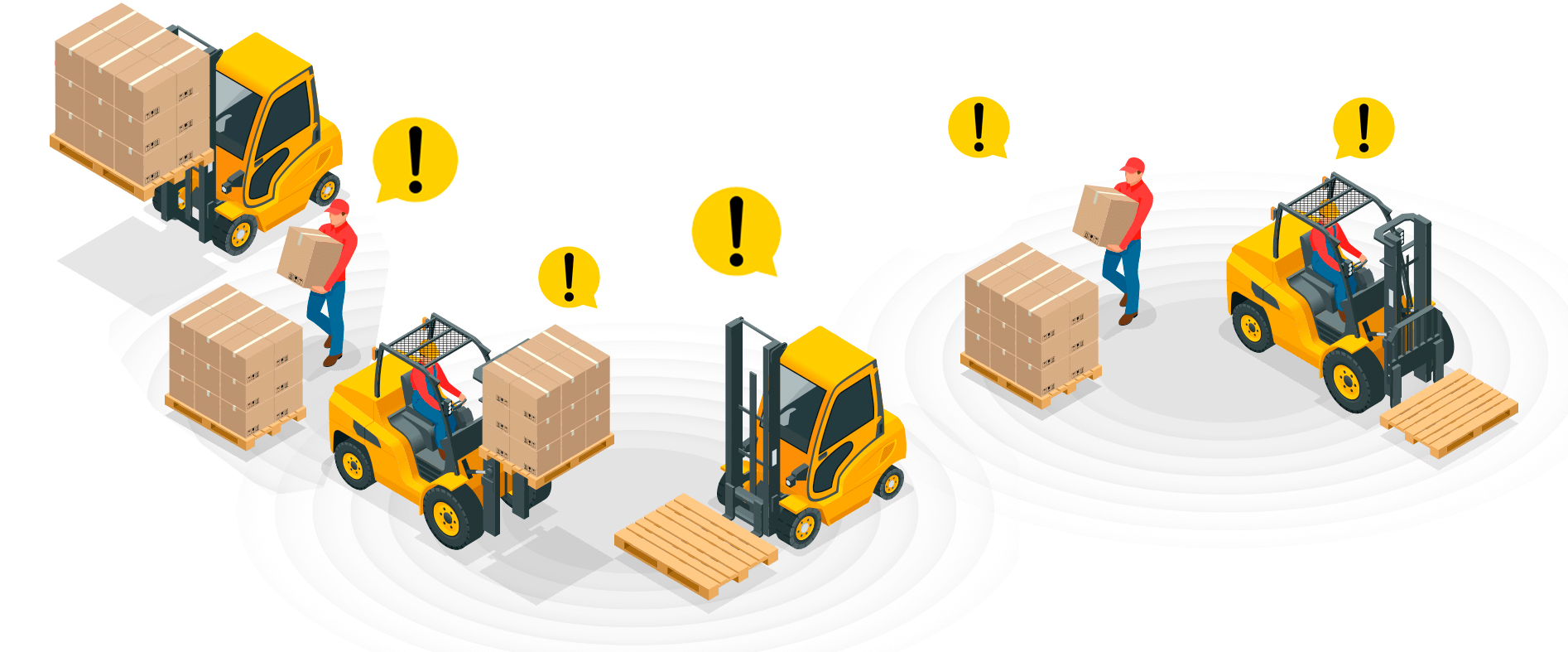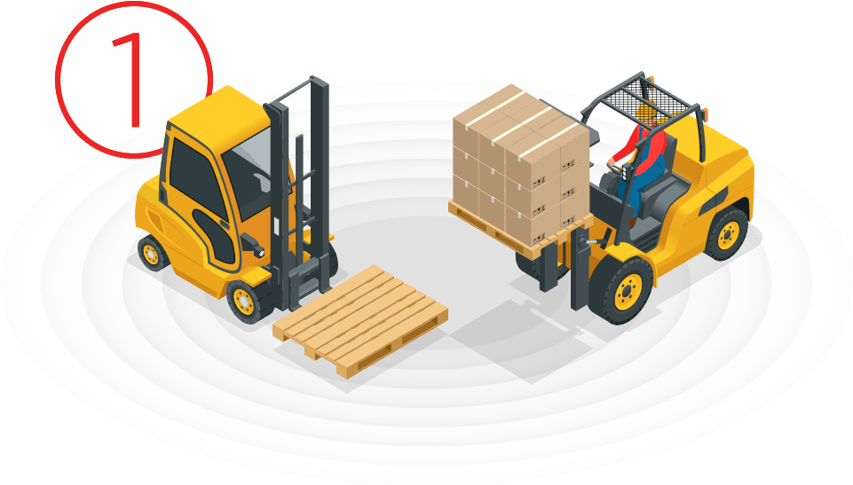 叉车防撞系统通过高精度UWB技术检测其他叉车的接近度。当叉车比预先配置的阈值更近时,系统分 2 个阶段将叉车限制在安全速度。声音和视觉信号可帮助叉车操作员注意到附近的其他卡车并采取相应行动。人工智能驱动的边缘处理叉车网关实时近似计算碰撞风险并提供一流的安全性能。