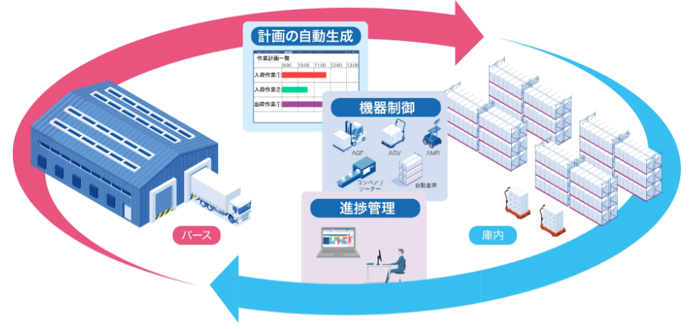 LogiPull WES根据从WMS获取的到发车排程信息和泊位管理系统中的货车到站排程,自动生成出入库调度工作计划。此外,通过按计划自动控制物料搬运设备,将以前分离的仓库作业和泊位管理作业整合在一起。