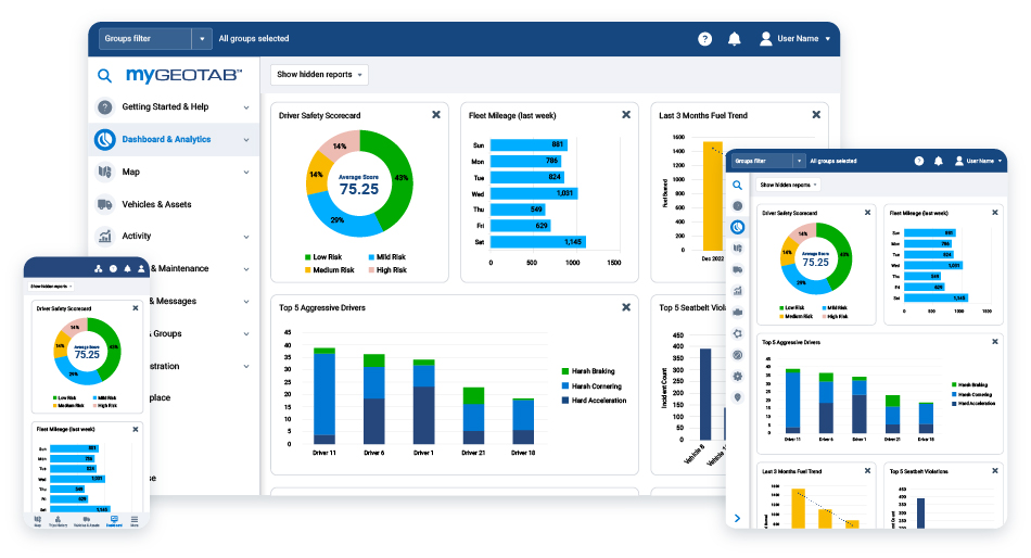 Geotab 的车队管理软件 MyGeotab 是一个一体化平台,可将车队管理数据转化为有用的信息,管理者和司机可以据此采取行动。MyGeotab 提供至少 14 种不同的语言,提供了一种用户友好的方式来监控车队性能并通过可定制的仪表板报告、高级规则引擎和地图上准确的车队跟踪来改善驾驶员行为。