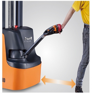 侧向垂直操作行走:在直立刹车位置亦可慢速操作,适用小空间储存环境
