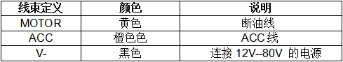 连接到车辆的正电源(+ 12V)。 黄色细线连接到设备继电器控制线。