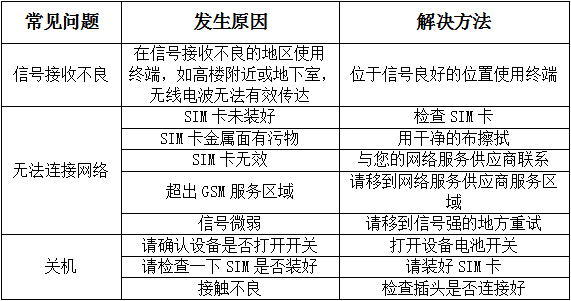 在操作终端时,如果感到设备不正常,请参阅下列问题及解决方案。若仍不能解决问题,请与销售商或服务商取得联系。
