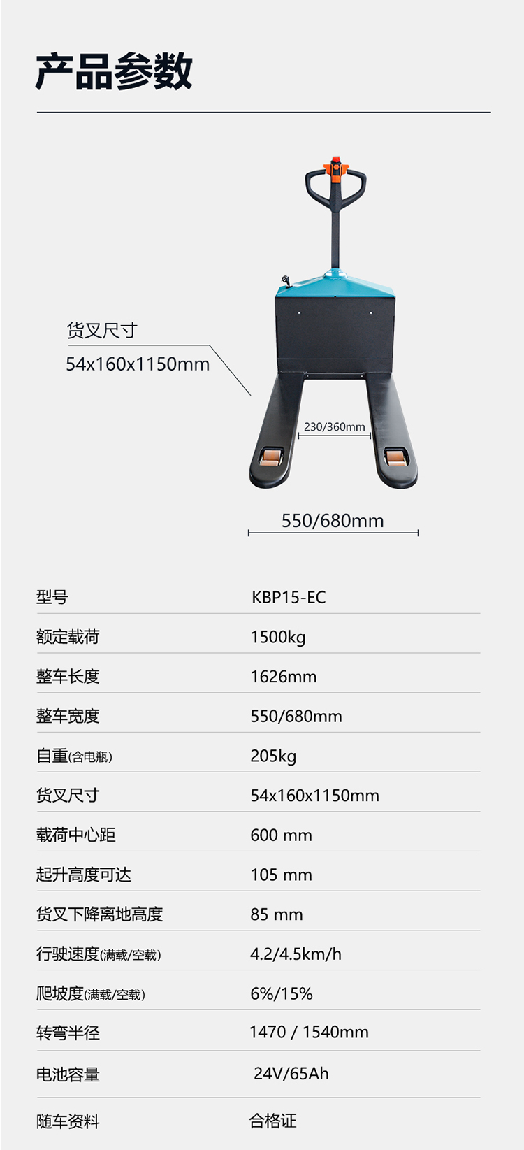 宝骊步行式托盘搬运车KBP15-EC