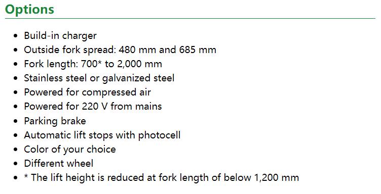 This electrical high lifting pallet truck with photocell is ideal for handling goods on pallets. The photocell gives a smooth and controlled movement as the highlifter lowers and raises automatically when goods are loaded or unloaded.