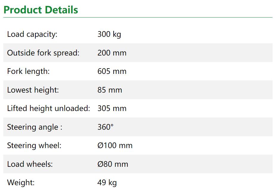 This small pallet truck is specially made for department stores that use display pallets.