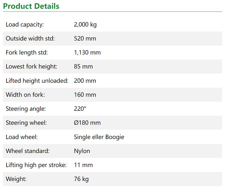 Load capacity: 2000 kg