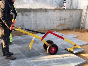 瓷砖升降机小车配备了液压活塞系统和坚固的夹持器,可在 400-800 毫米范围内进行调整。因此,瓷砖升降机手推车可处理最常见的 500-800 毫米瓷砖。并且可以将它们提升到高达 1 米的高度。手推车配备强大的 4.00 x 8 气动轮。负载能力最大。125 公斤。