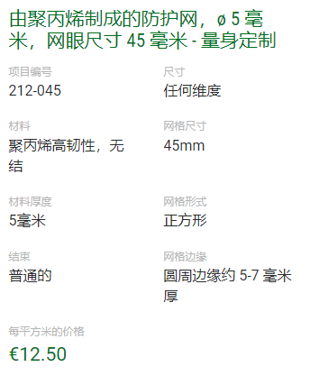 由聚丙烯制成的防护网,ø 5 毫米,网眼尺寸 45 毫米 - 量身定制