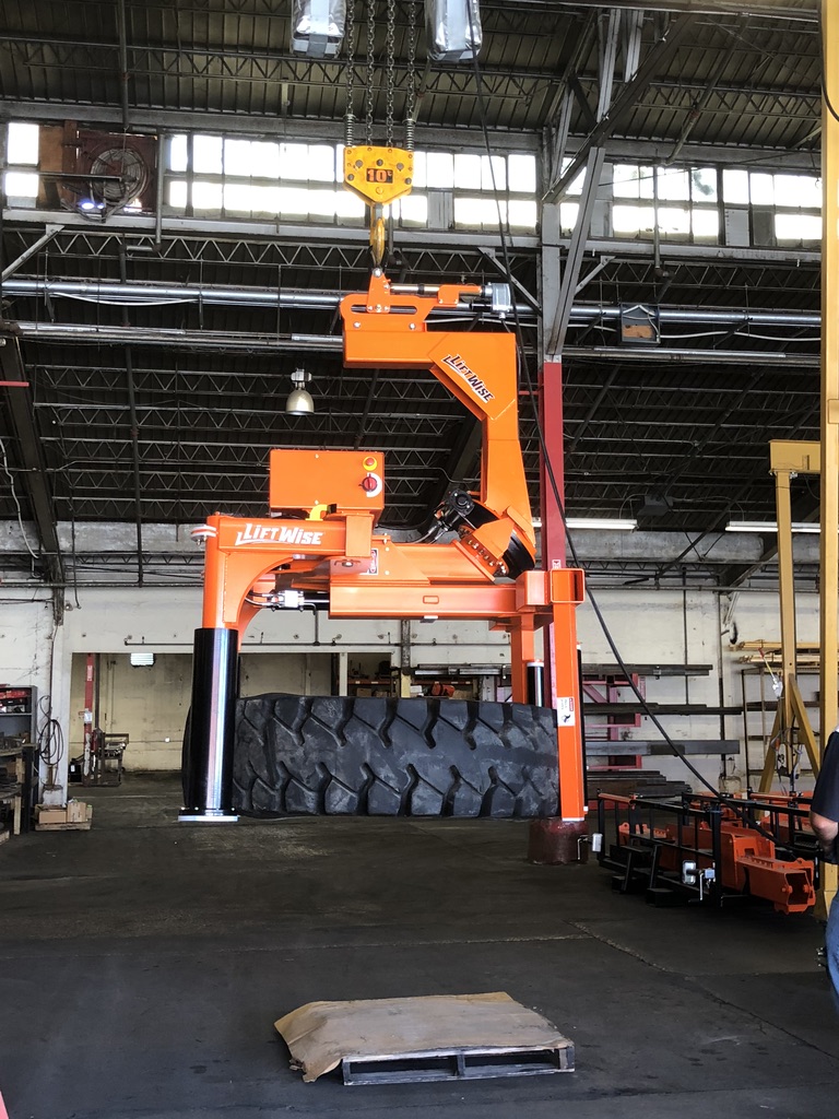 侧绕机轮胎分选机是一种高容量设备。SideWinder能够从水平表面(例如托盘)提升容量高达2,900磅的轮胎,将它们旋转到垂直,然后将轮胎安装到车轴上。