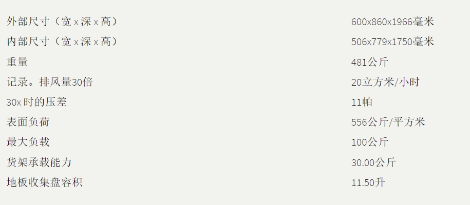 内部尺寸:宽 x 深 x 高(毫米)506 x 779 x 1750