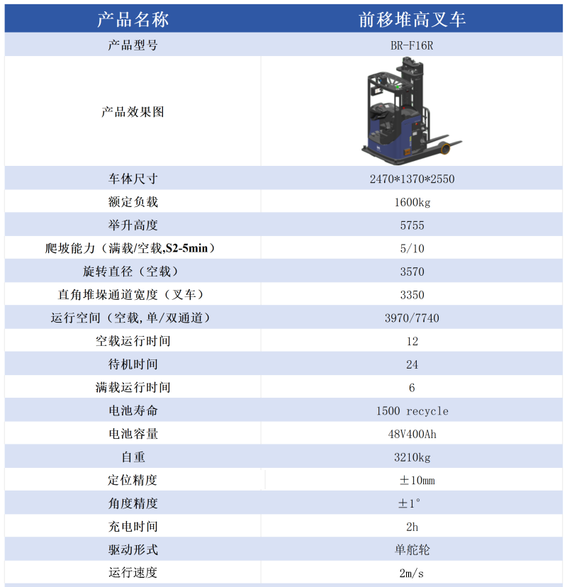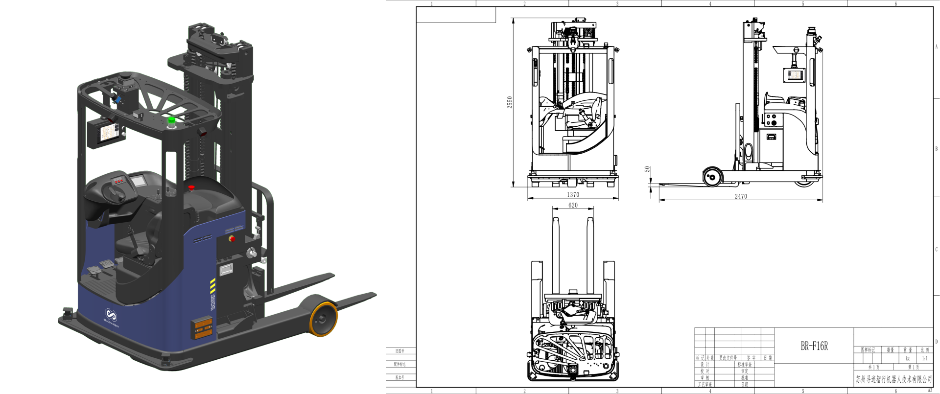 (2)高举升能力:举升高度5.75m,能够处理高堆垛任务,提高垂直存储效率;