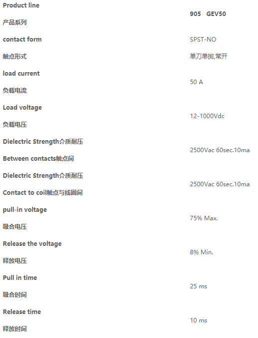 • 触点室内充有惰性气体,磁吹灭弧,可用于 1000VDC 负载隔离