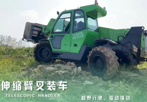 双速静液压系统,四轮驱动且具备三种转向模式,超强的越野性能,全桥转向、全桥驱动,轴距长,重心低,车架自动调平。动力十足,车身平稳,适应多种复杂工况。