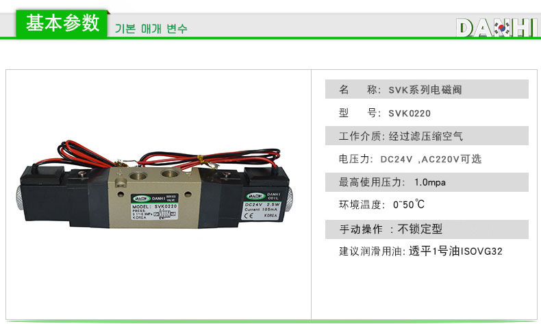 韩国DANHI丹海气动元件SVK0220双线圈2位5通电磁阀