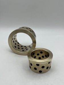2. 石墨润滑:在铜合金的基体上,镶嵌有石墨与MoS2复合型固体润滑剂,这种设计突破了传统轴承依靠油膜润滑的局限性。在使用过程中,通过摩擦热使固体润滑剂与轴摩擦,形成油、粉末并存的优异润滑条件,既保护轴不磨损,又使固体润滑特性得以持久。