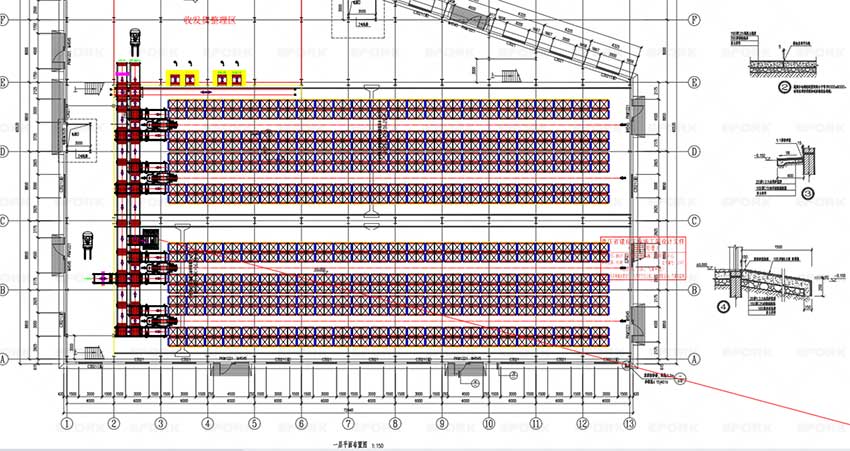 该项目使用4台双伸位堆垛机,共3800多个库位,带有自动化分拣平台实现自动分拣。配合WMS智能化管理,实现数百种物料的高效存储,高效实现120托/小时的高效节拍。减少人工,实现真正意义的智能仓库。